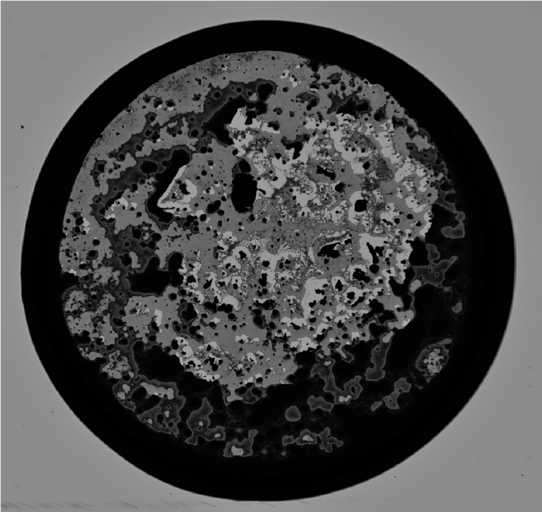 2019 Honorable Mention, Northwestern Scientific Images Contest. My research involves analyzing thestresspatterns that form in a drying drop of small particles suspended within a medium, which is called a colloidal system. In our everyday lives, these systems include milk, blood, and paint. Using a microscope, a dried drop of 830nm silica spheres 1% of its total volume is captured. Like drops of smaller particle sizes, there is a ring of accumulated silica spheres that forms on the perimeter, which has been documented as the coffee ring effect. However, unlike the other drops, there are no cracks that pass through the center, as the larger particles instead clump around anything they may find, even themselves.