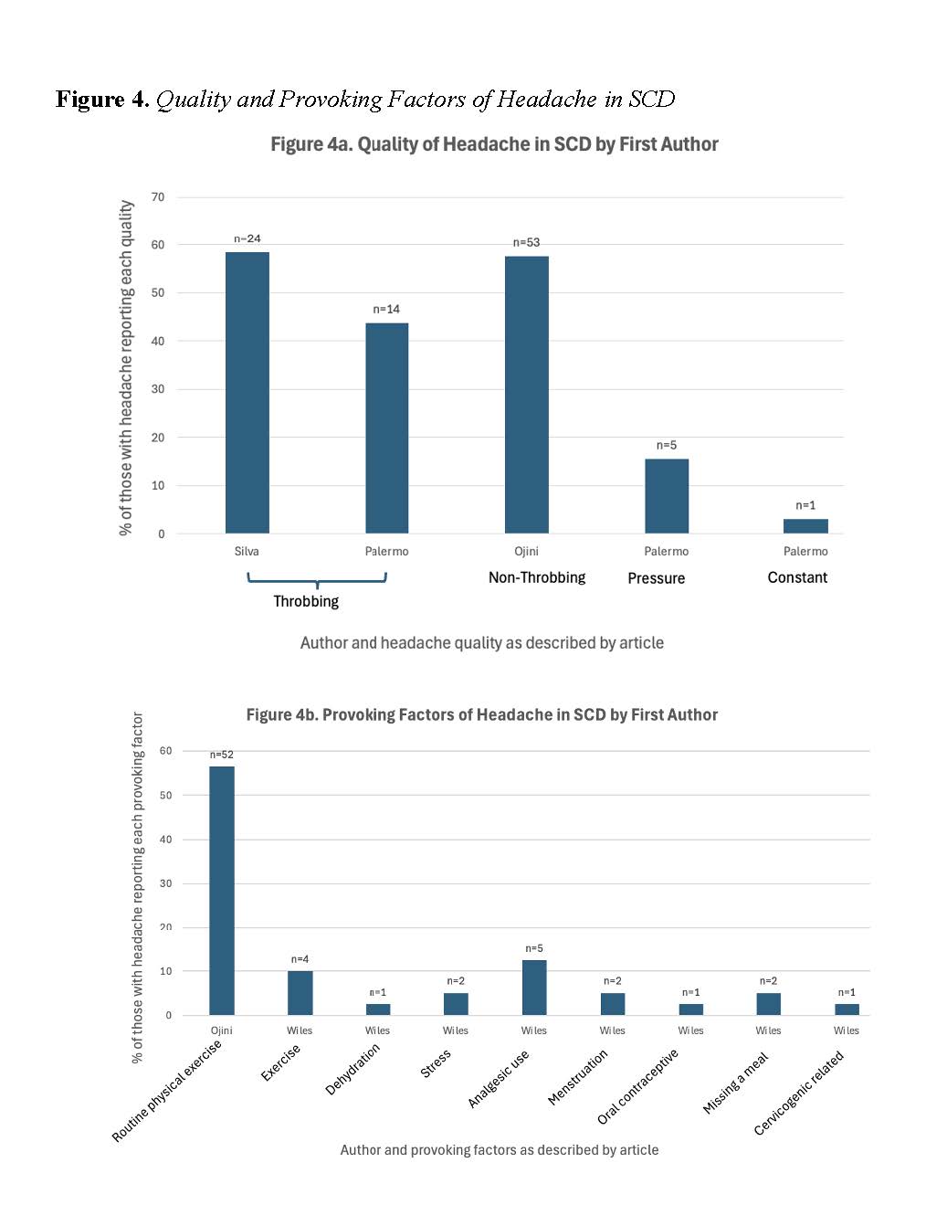Discussion: There are gaps in our knowledge about the prevalence, characteristics, and underlying mechanisms of headaches in SCD. Since headaches in SCD are common and sometimes severe in intensity, clinicians must distinguish between those that are primary, and those secondary to a serious underlying cause. Knowledge gaps in characterizing headaches in SCD need to be bridged. Clinical trials in SCD provide an opportunity to study pre- and post-intervention prevalence, characteristics, and mechanism(s) of the headache. Well-designed large observational studies provide similar opportunities to better define headaches in SCD.